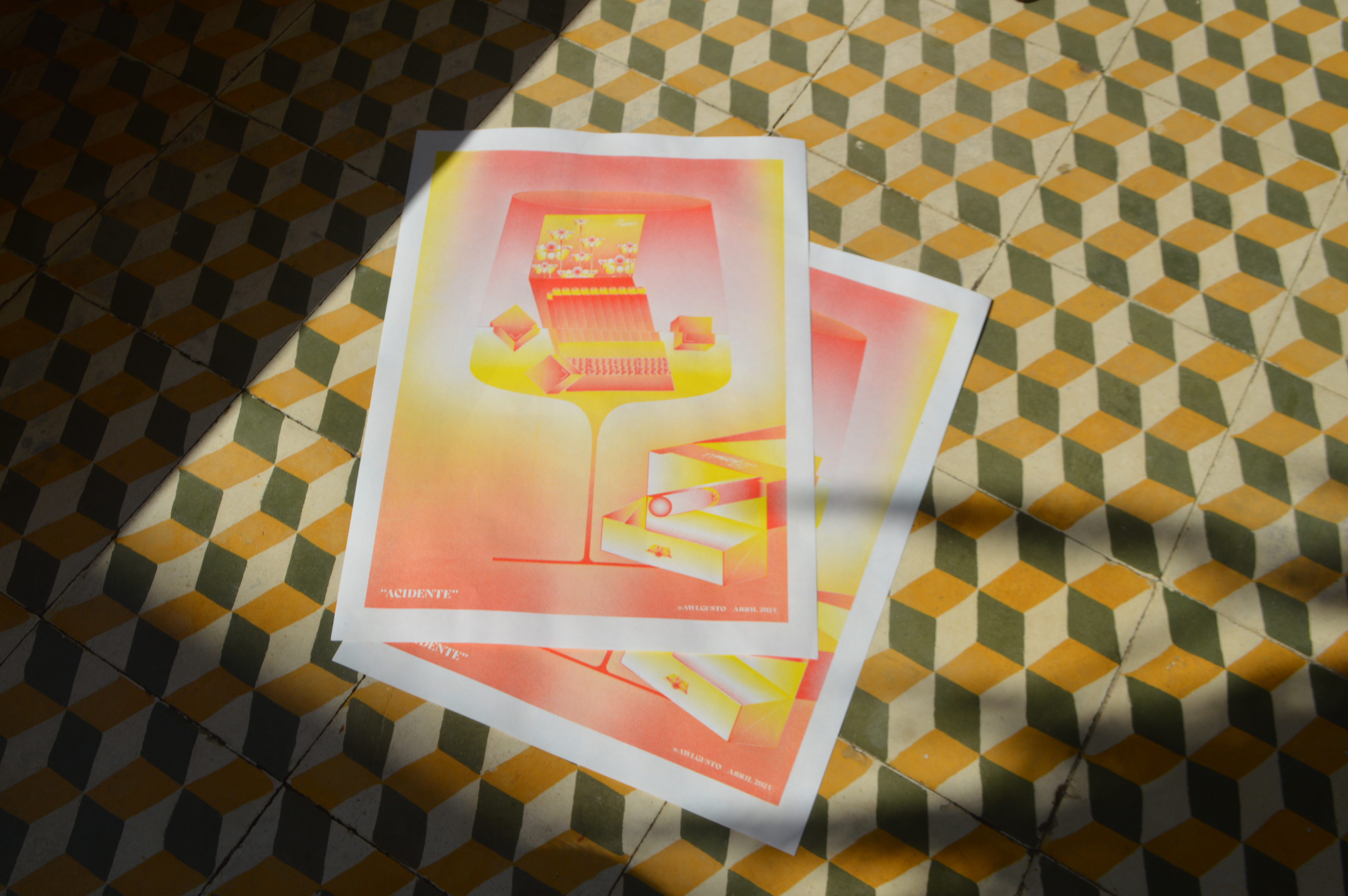 "Acidente" é uma ilustração criada para o evento "Introdução à Risografia" na Casa Benvinda. Neste trabalho, desenvolvi uma narrativa visual em estilo vetorial que representa o conceito de um acidente inusitado: um drink que se tornou intragável após os fósforos caírem na bebida, arruinando a possibilidade de acender o último cigarro.
